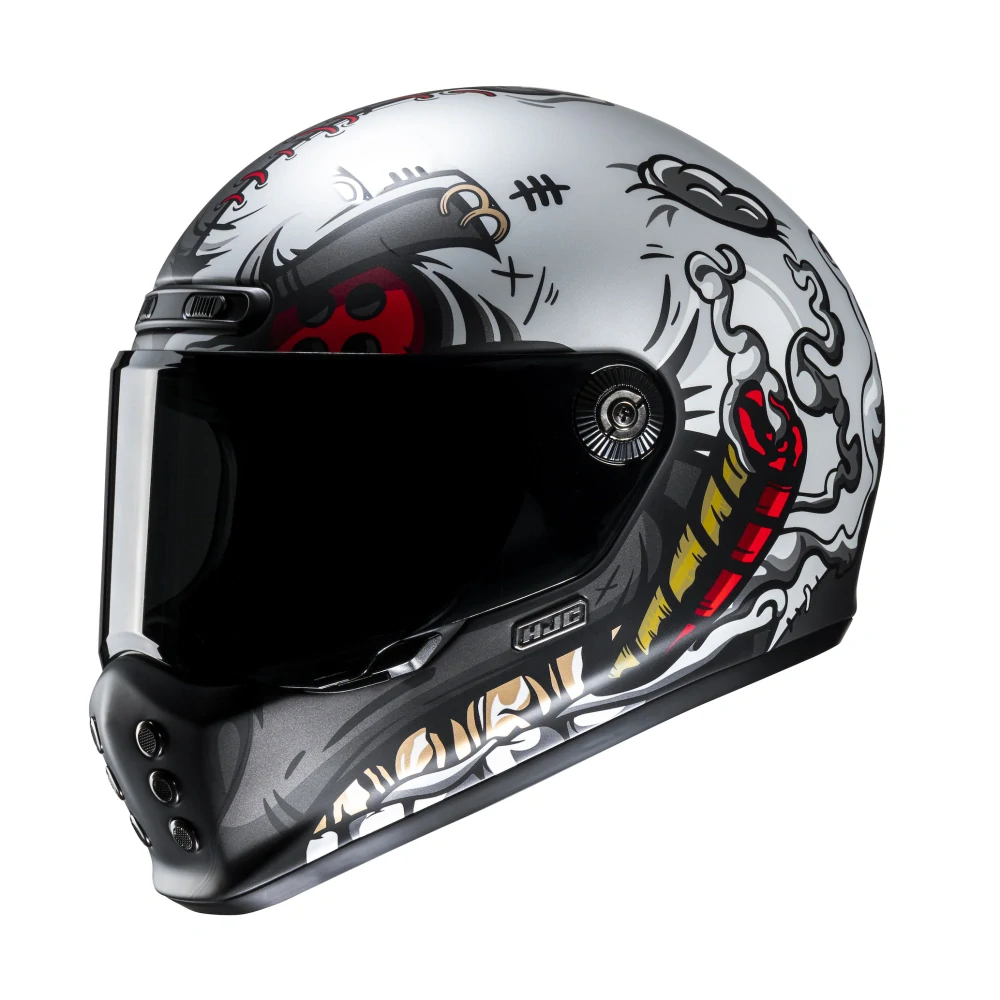 Model V10 presahuje hranice historického vzhľadu vďaka novým moderným prvkom, ako je ľahká škrupina zo sklenných vlákien, aerodynamický dizajn, emergency lícnice pre väčšiu bezpečnosť, odnímateľný a umývateľný interiér a jednoduché skrutky na rýchlu výmenu plexi štítu. Táto prilba je kompatibilná s technológiou Bluetooth Smart HJC.